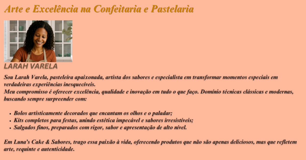 Na Luna’s Cake & Sabores, transformamos festas em sonhos com nossos bolos artísticos e deliciosos, personalizados para cada celebração especial que você planeja.